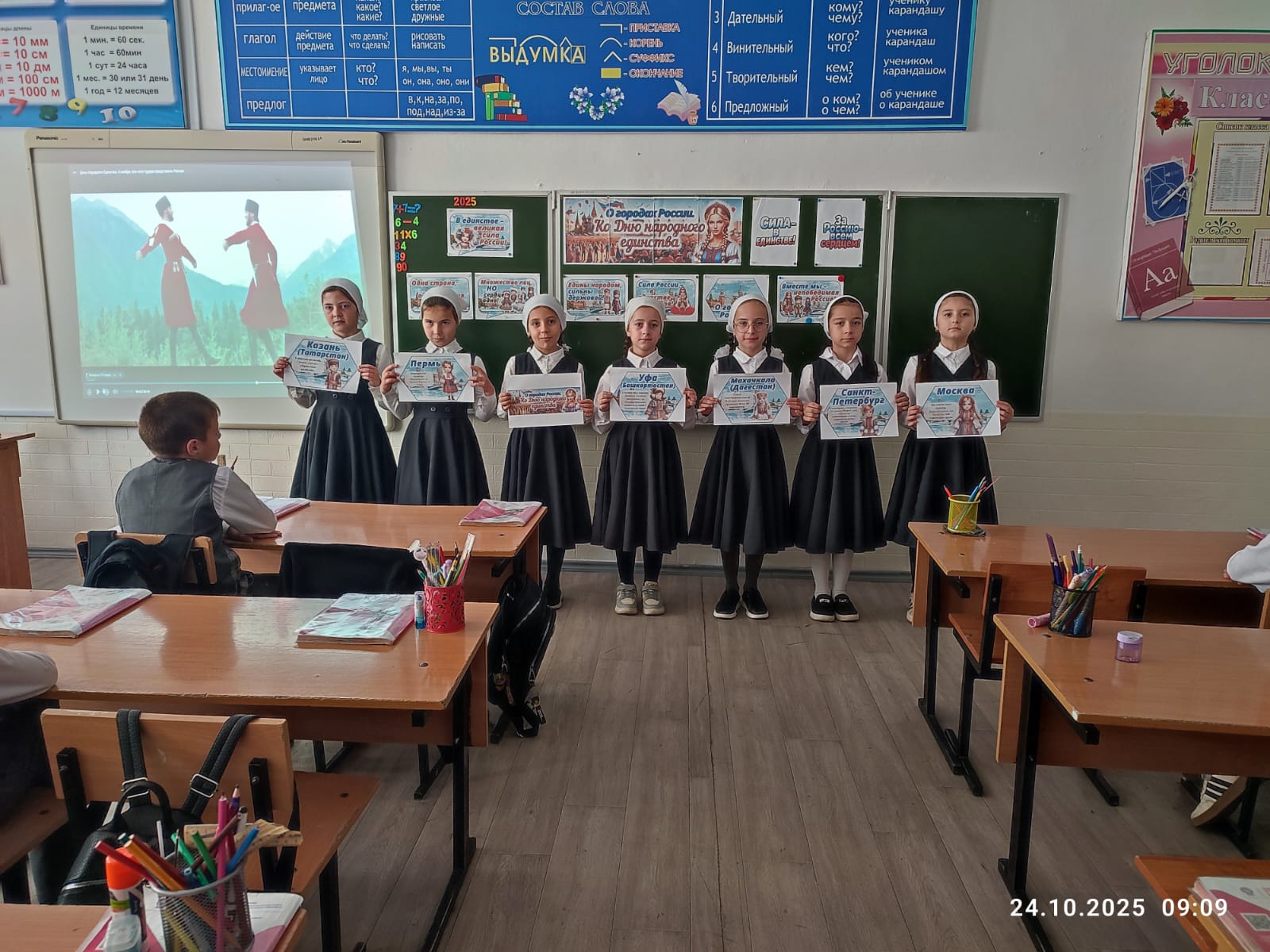 Первым уроком в 1 - 11 классах МБОУ «СОШ 31» г. Грозного проведено внеклассное занятие «Разговоры о важном» на тему «О городах России. Ко Дню народного единства».