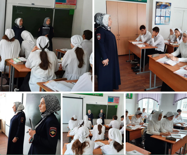 10.10.2022Во исполнение письма первого заместителя министра образования и науки Чеченской Республики Департамента образования Мэрии г. Грозного о необходимости осуществления профилактических мероприятий среди несовершеннолетних с обучающимися 11 класса МБОУ "СОШ 31" г. Грозного 10 октября проведена беседа по предупреждению вовлечения их в преступную и иную деструктивную деятельность. Также речь шла о недопустимости пользования телефонами во время учебных занятий, о запрете пользования незнакомыми сайтами, об ответственности за правонарушения. В беседе приняли участие старший инспектор ОПДН ОП-2, майор полиции Хадисова Эльза Нохаевна и инспектор ОПДН ОП-2, лейтенант полиции Лорсанова Седа Лечиевна.