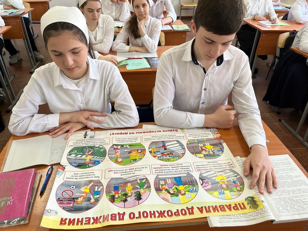 22.09.2023С 18 по 22 сентября в 1-11 классах МБОУ "СОШ 31" г. Грозного проведены классные часы на темы: "Дорожные знаки и дорожная разметка" (1-4 классы), "У дорожных правил каникул нет" (5-9 классы), "Закон улиц и дорог" (9-11 классы).Цель проведения: профилактика и предупреждение детского дорожно-транспортного травматизма, привитие детям навыков безопасного поведения на дороге.