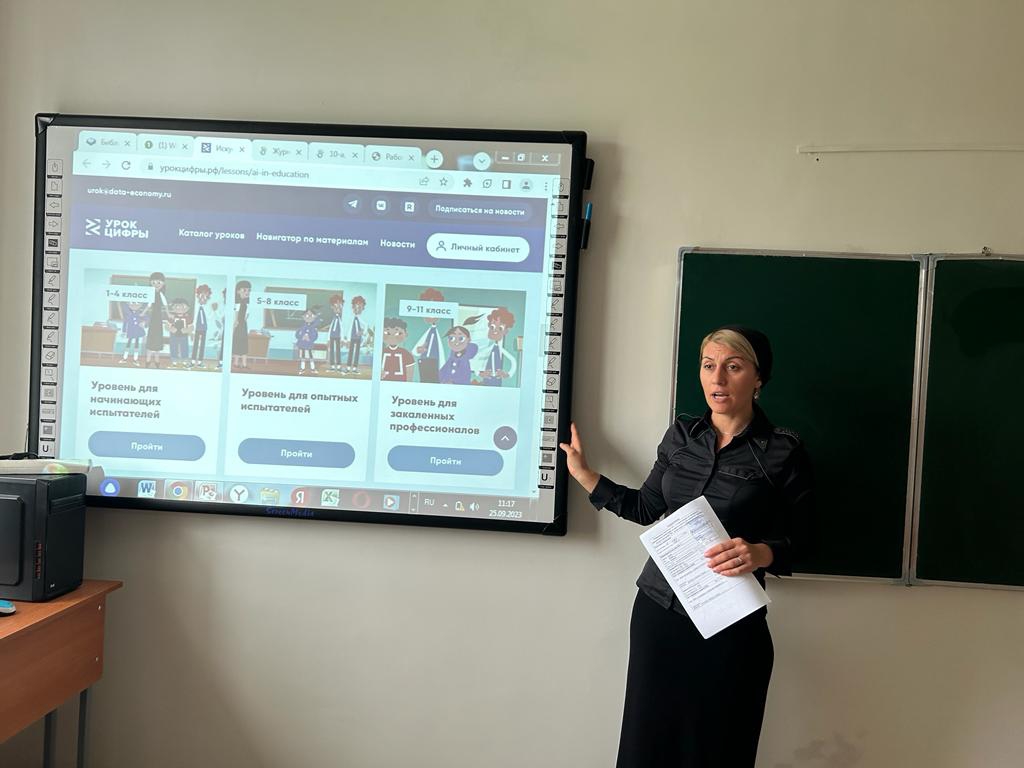 Во исполнение копии письма заместителя Министра цифрового развития,связи и массовых коммуникаций Российской Федерации Бориенко Г.В о поддержке проекта «Урок цифры» 19 сентября 2023г в школе проведен открытый урок в 10 «а» классе по теме: « Искусственный интеллект в отраслях»