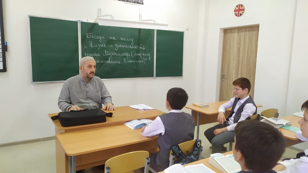 В рамках реализации Единой Концепции духовно-нравственного воспитания и развития подрастающего поколения в МБОУ «СОШ № 31» г. Грозного 27 сентября 2023 года педагогом-организатором по ДНВ Шамаевым И.У. была проведена беседа по теме: « Жизнь и деятельность пророка Мухаммада (мир ему и благословение Всевышнего )». В своей беседе педагог-организатор по ДНВ Шамаев И. У. рассказал учащимся о жизни и деятельности пророка Мухаммада (с.а.в) и о его роли и значении в истории всего человечества. Также он отметил , что пророк Мухаммад (с.а.в) обладал самыми лучшими нравственными и моральными человеческими качествами которыми может обладать человек. Ибрагим Уланович сделал напутствие учащимся, чтобы жизнь и деятельность пророка Мухаммада (с.а.в) являлась для них нравственным примером и ориентиром как лучшего из созданий Аллаха.