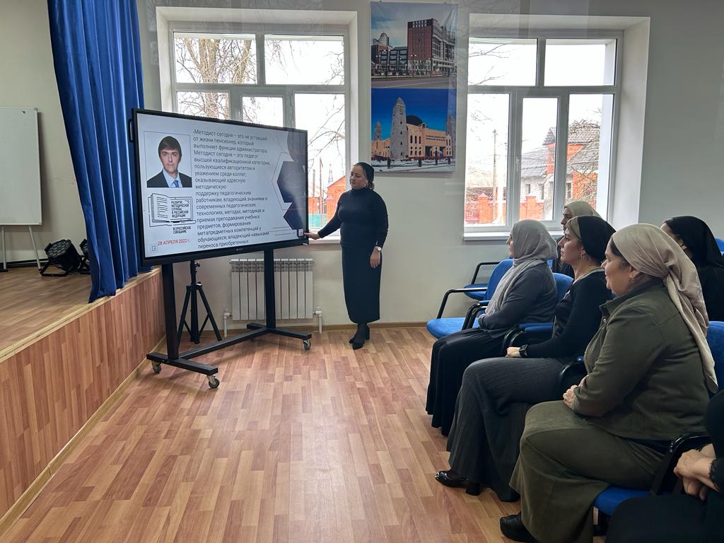 13 ноября в школе состоялся семинар на тему: «Знакомьтесь: наши региональные методисты!» в рамках реализации Концепция создания и функционирования региональной системы научно-методического сопровождения педагогических работников и управленческих кадров ЧР. В мероприятии приняли участие педагоги и заместители руководителя ОУ. Семинар провела заместитель директора по МР Эзиева Л. И. Он был направлен на поддержку и развитие методической работы в ОУ и повышения качества образования.