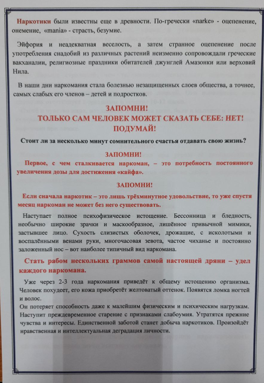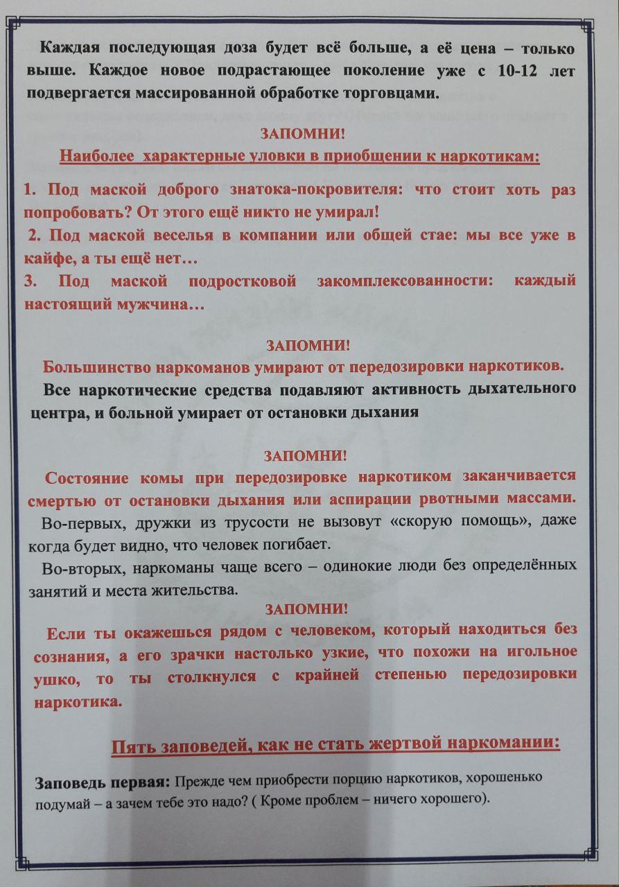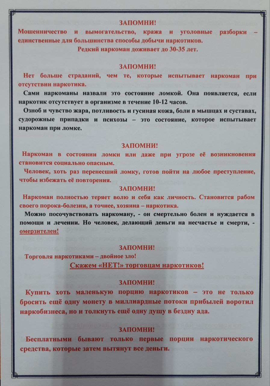 В рамках Всероссийской антинаркотической акции "Сообщи, где торгуют смертью", информационный буклет "Спасем жизнь вместе!" размещен на страницах МБОУ "СОШ 31" г. Грозного