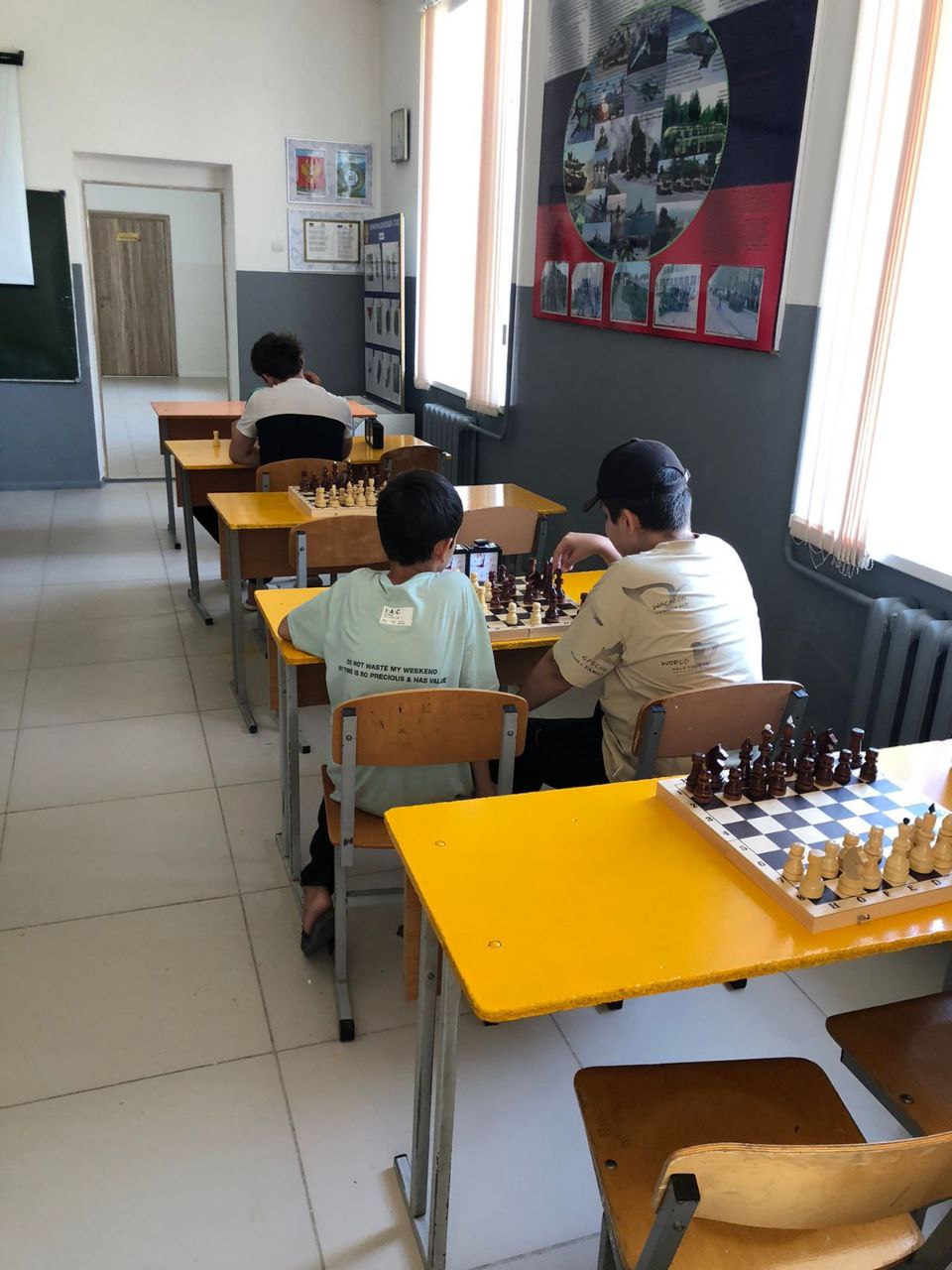 Третий день ребята познают азы игры в шахматы, а младшие дети занимаются по программе "АБВГДЕйка".