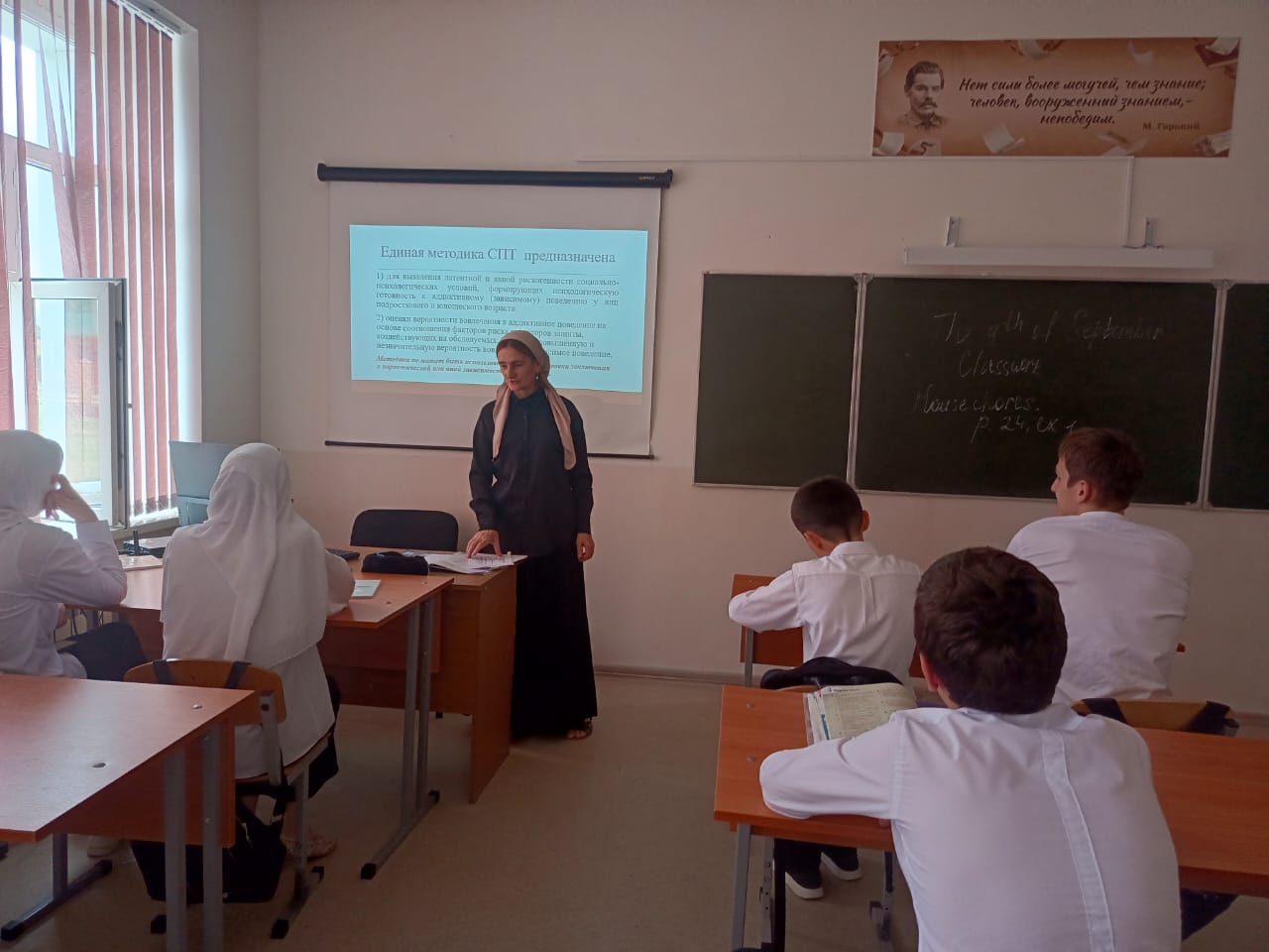 В МБОУ «СОШ № 31» г. Грозного педагог-психолог школы Арсакаева Х.С. провела беседу по информационно‑разъяснительной работы с учащимися 7-11–х классов по социально‑психологическому тестированию (СПТ) Цель - Обеспечить информированность учащихся о целях, формате и правовой защите данных при тестировании. - Снизить тревожность и мотивировать к честному участию, объяснив значимость теста как инструмента диагностики, а не оценки личности. - Обеспечить понимание процедур: добровольность, конфиденциальность, порядок проведения.